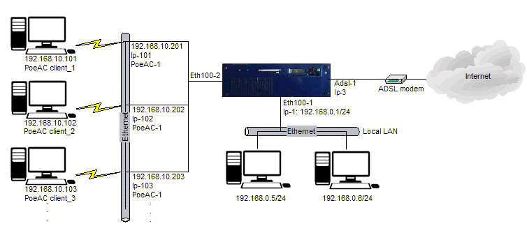 The connection to the Access Concentrator can be done by using standard Windows PPPoE client or common routers that support this protocol.