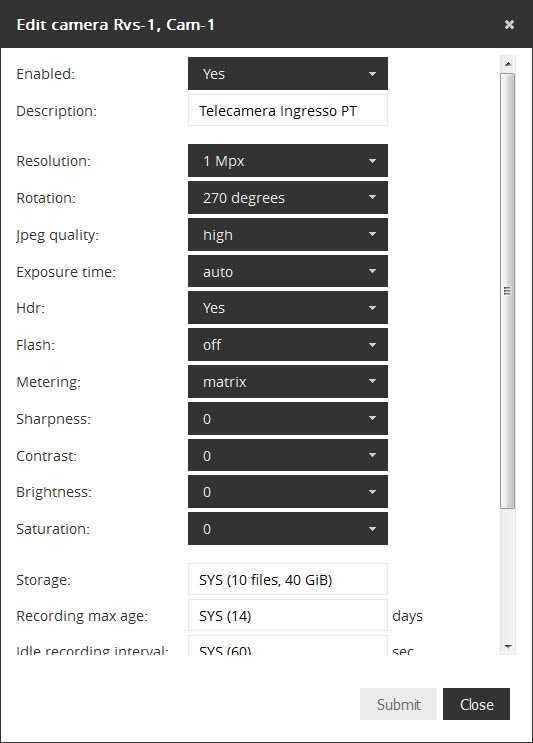 This button opens a pop-up windows, where users can edit selected camera: