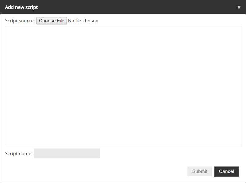 It's possible to add by selecting the file from your PC or by writing the script.