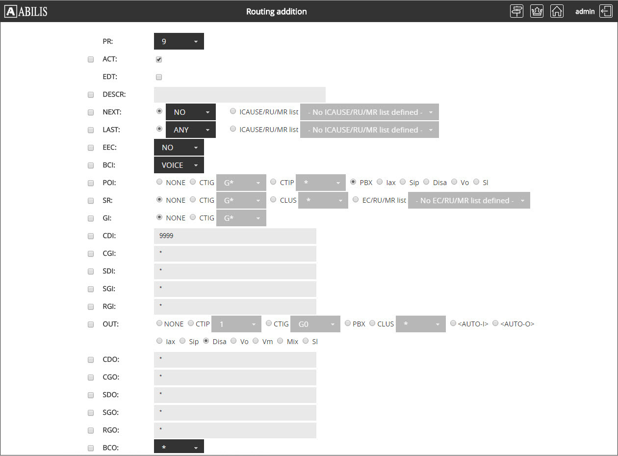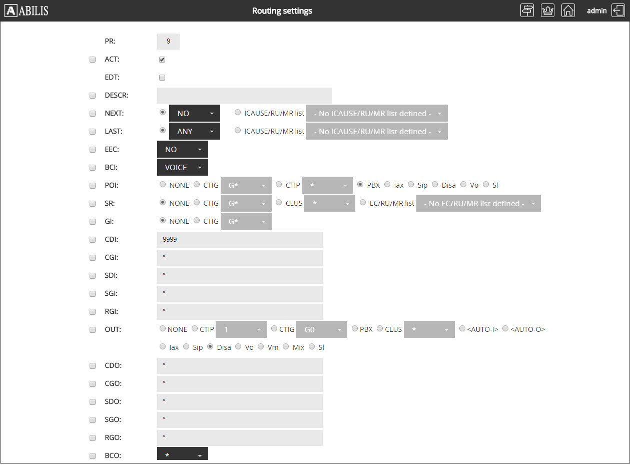 [11:26:29] ABILIS_CPX:a http rights path:/sys/admin/cti/rout/ user:httpuserCOMMAND EXECUTED [11:27:04] ABILIS_CPX:d http rights- Not Saved (SAVE CONF) ------------------------------------------------------- ------------------------------------------------------------------------------- ID: PATH: USER: FILE: DIR: RECUR: PROT: ------------------------------------------------------------------------------- 1 /sys/ admin r--- l--- YES PLAIN,SSL ... ------------------------------------------------------------------------------- 16 /sys/admin/cti/rout/ httpuser r--- l--- YES PLAIN,SSL ------------------------------------------------------------------------------- ...