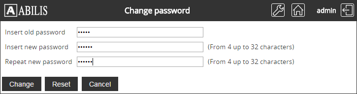 Clicking Change password you will be moved to the following page: insert the old and the new password and then press the Submit button to validate the operation.