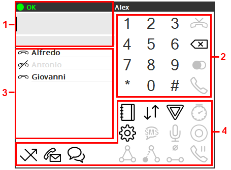 Icons to some functions that are identical to the ones available in the OPC panel (see Section 60.2, “Call section”), except preferences and mute microphone.