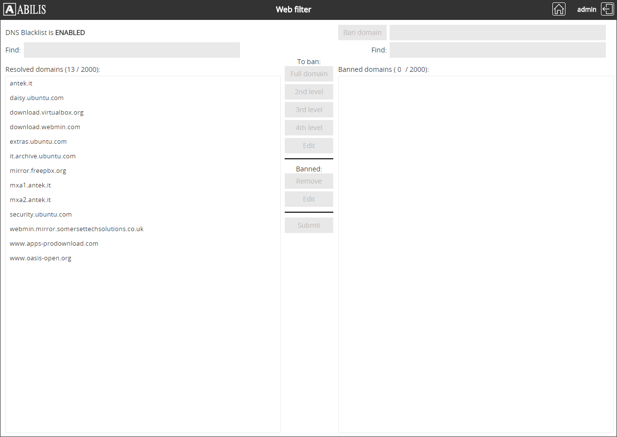 Refer to paragraph Section 29.5.3, “DNS Blacklist management through the web interface” to learn how to use this feature.