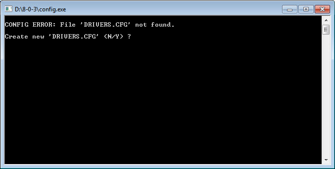 2. Type y to confirm the creation of a new DRIVERS.CFG file.