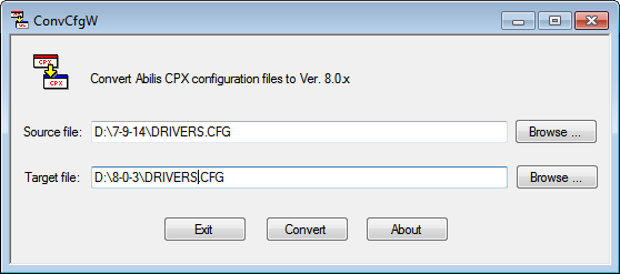 1. Double-click the convcfgw.exe file: the following window will appear.