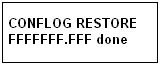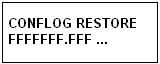 | conflog restore / conf restore | Copy the configuration files (DRIVERS.CFG, DRIVERS.BCK) on HD/CF. |