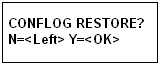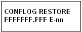 If the operation is successful, the messages “CONFLOG RESTORE”, “EXECUTED” are shown; otherwise the messages “CONFLOG RESTORE”, “ENDED WITH ERROR” will be displayed.