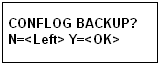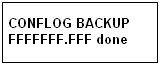 If the operation is successful, the messages “CONFLOG BACKUP”, “EXECUTED” are shown; otherwise the messages “CONFLOG BACKUP”, “ENDED WITH ERROR” will be displayed.