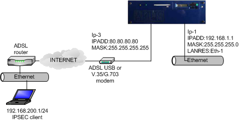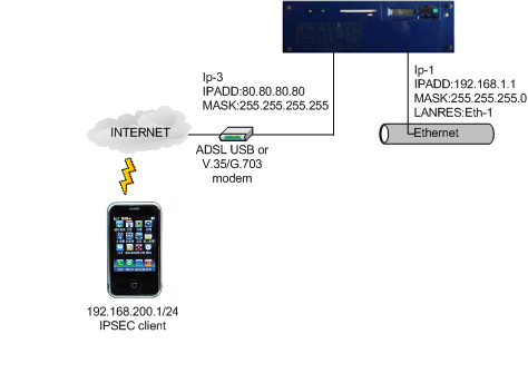 The IPSEC connection works ONLY if the LAN, where the PC client is connected to, is different from the LAN of Abilis (e.g. In the previous case if the PC client IP address belongs to the 192.168.1.0/24 the IPSEC connection doesn't work!). |