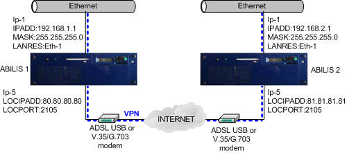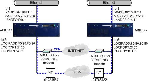With the “backup over ISDN” option, in case of failure of the permanent VPN connection, the Abilis tunnel is instantaneously switched onto ISDN backup lines.