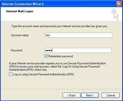 6. Configure the account name and password.