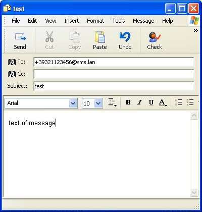 2. Compose an email to +<country code><number>@sms.lan.